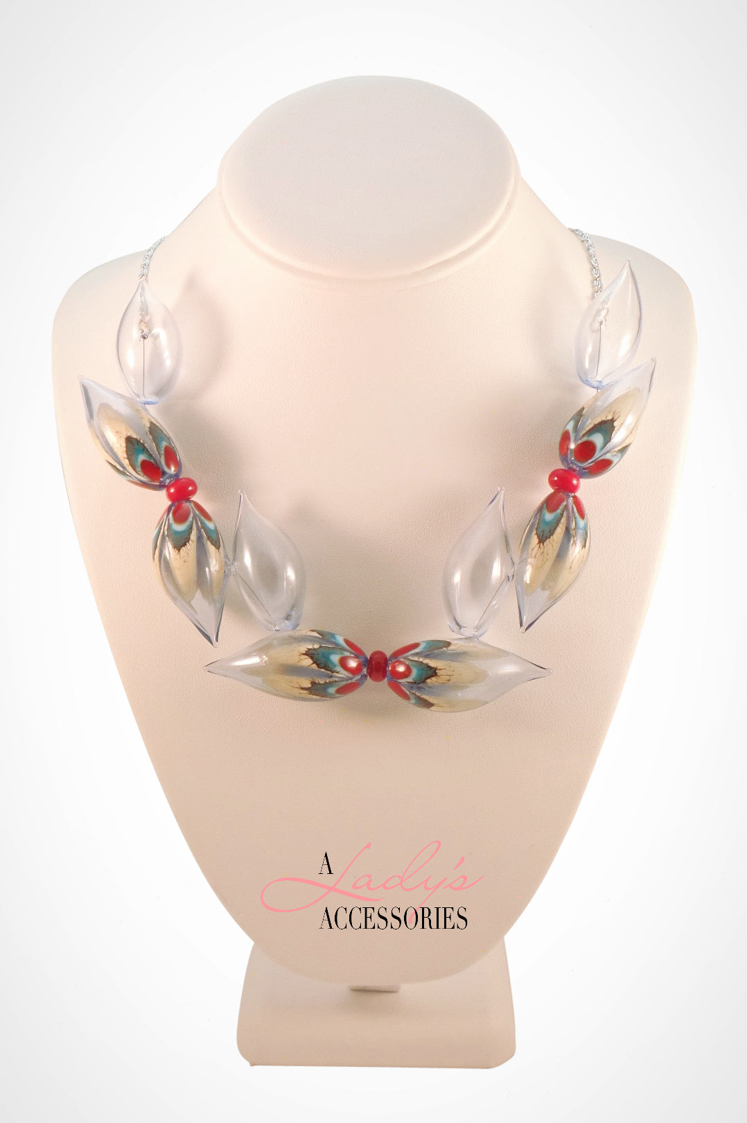 Bold necklace and earrings with dramatic design elements for a confident statement.