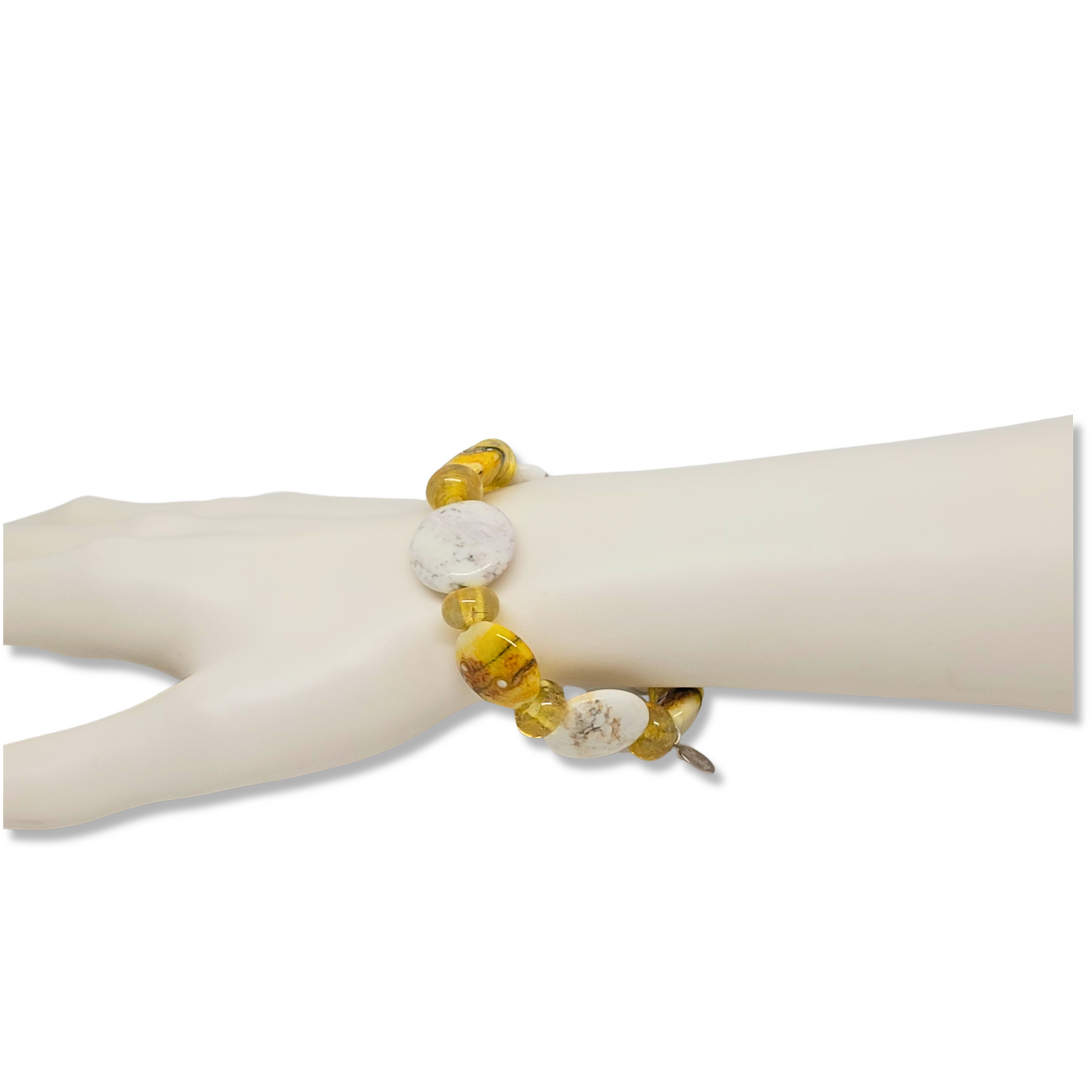 Beige, yellow, and translucent lampwork beads with howlite gemstones add natural charm to this bracelet and earring set.