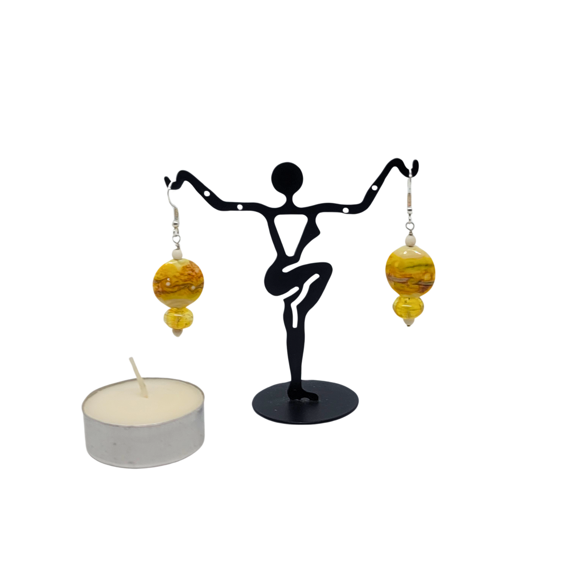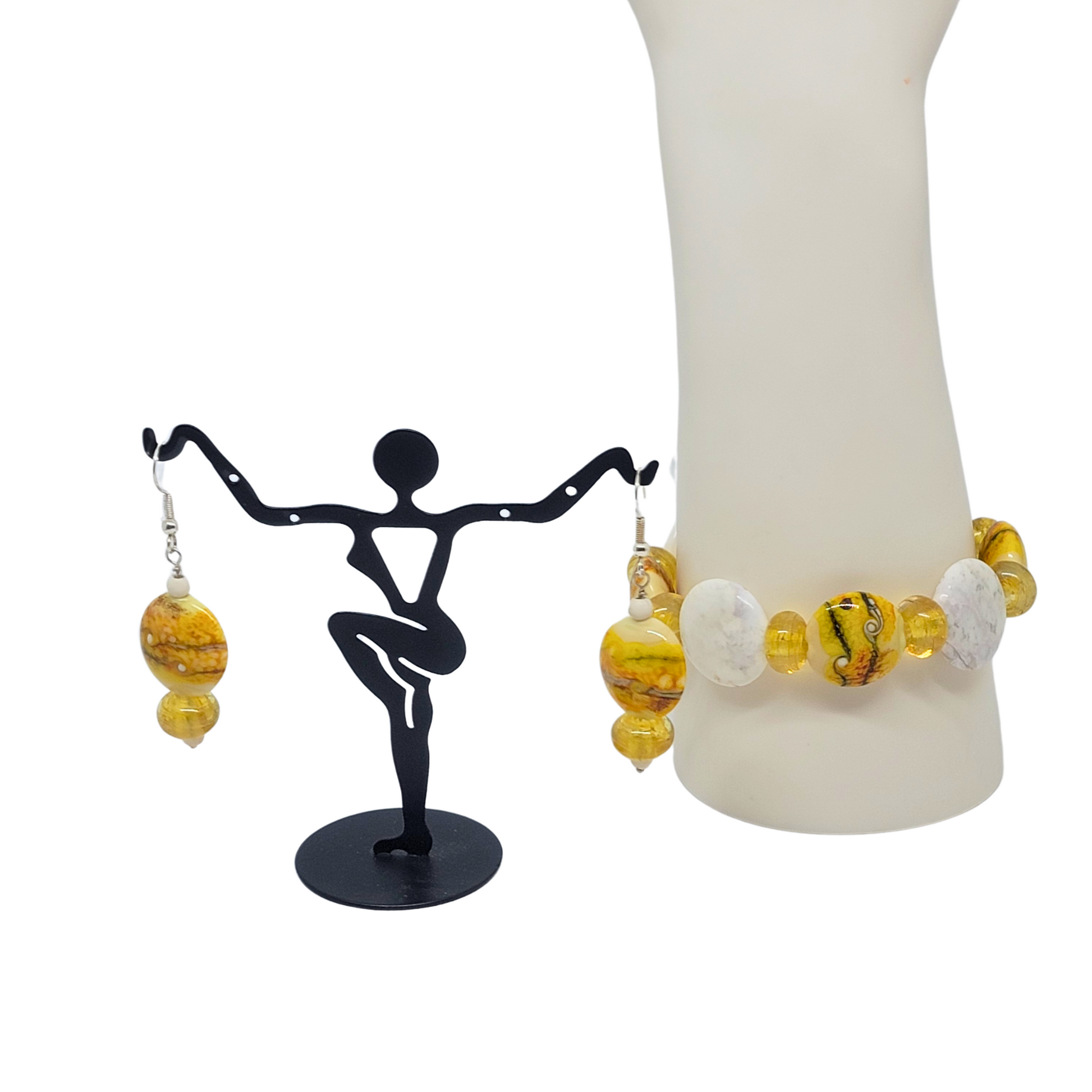 The Lakayla Set features a bracelet and earrings adorned with beige, yellow, and translucent yellow handmade lampwork beads, complemented by howlite gemstones for a refined and versatile look.
