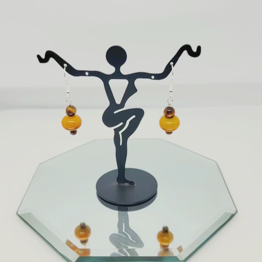 Discover sophisticated style with handmade lampwork bead earrings featuring genuine Tiger's Eye gemstones and sterling silver findings. These compact 0.5-inch artisan glass bead earrings showcase golden-brown natural stone accents and expert craftsmanship. Perfect for adding earthy elegance to professional or casual looks.