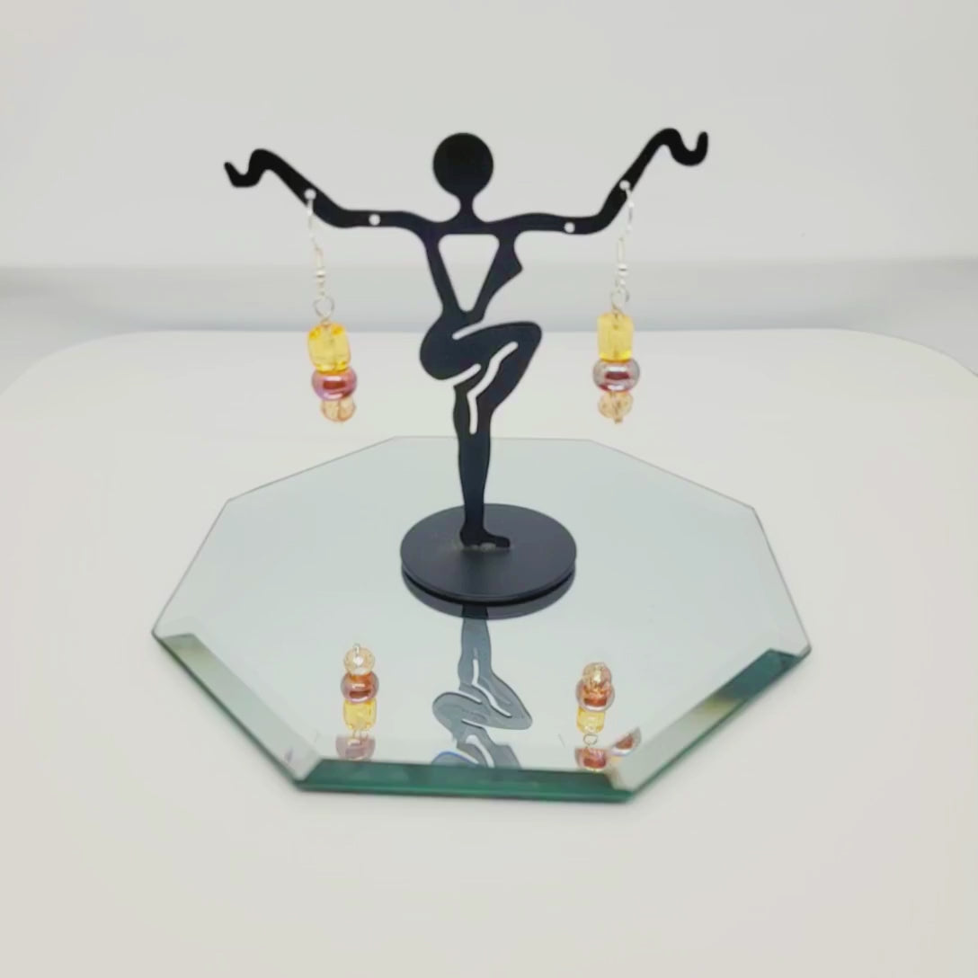 Express your artistic side with handmade lampwork bead earrings in sterling silver, measuring 0.75 inches. These versatile artisan glass bead earrings feature vibrant lampwork craftsmanship with eye-catching colors and patterns. Ideal for adding handcrafted charm and unique style to any wardrobe.