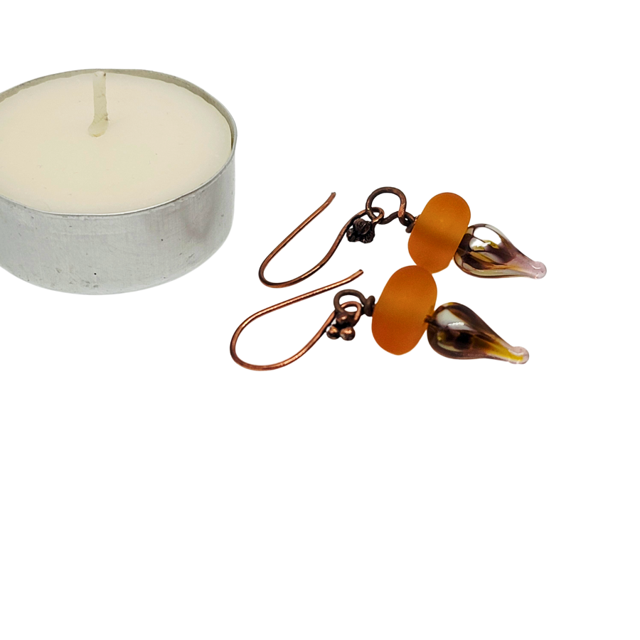 The Oni Earrings celebrate artisan craftsmanship with their stunning handmade lampwork glass beads and copper details. Designed for the modern professional woman who values distinctive, handcrafted jewelry, these earrings deliver sophisticated style with individual flair. Their versatile design makes them an essential addition to your curated collection, offering the perfect finishing touch to any ensemble.