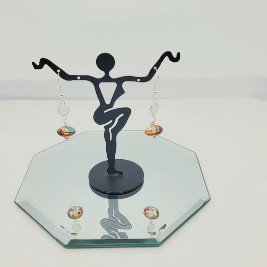 Discover the elegant sophistication of our Tamasha Earrings, featuring exquisite handmade lampwork glass beads paired with natural moonstone gemstones and sterling silver accents. Each pair is artisan-crafted with premium sterling silver findings, offering both comfort and luminous elegance. At 1.0 inches in length, these versatile earrings provide graceful movement without feeling heavy, making them perfect for everyday wear or special occasions. Whether you're treating yourself or gifting a special woman in your life, the Tamasha Earrings celebrate refined taste and the enduring beauty of handcrafted jewelry with natural gemstones.